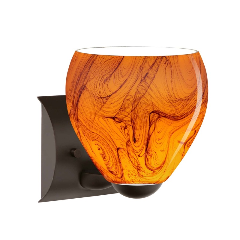 The Bolla is a compact handcrafted glass, softly radiused to fit gracefully into contemporary spaces. Our Habanero glass is a warm toned cased glass, with inner opal and a glossy finish. The color of vibrant Persimmon is accented by flowing marbleized black lines, and nestled between the inner opal and outer clear layers. When lit the glass is vitalizing as well as stylish, that adds appeal to any environment. This blown glass is handcrafted by a skilled artisan, utilizing century-old techniques passed down from generation to generation. Each piece of this dcor has its own artistic nature that can be individually appreciated. The mini sconce fixture is equipped with a sleek arcing die cast lamp holder and matching radiused rectangular canopy. These stylish and functional luminaries are offered in a beautiful brushed Bronze finish.