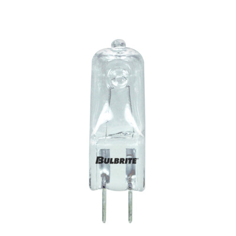 Product Description:JC Bi-Pin: 120V - G6.35, GY8, G9, G9 Flat Pin BladeDetailsBrand: BulbritePart Number: 652075Category: BulbsStyle: G6.35Finish: ClearUPC: 739698652757MeasurementsWidth: 0.50in.Shipping Carton: