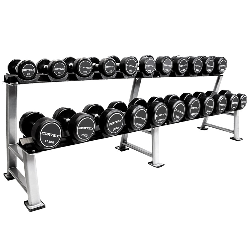 Our 5kg to 30kg comes in 2.5kg increments and offers 11 pairs of dumbbells as well as a Commercial Pro dumbbell rack to suit.