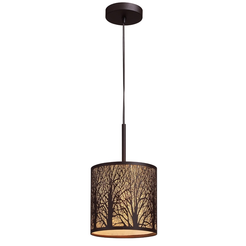 Elk 31073/1 Woodland Sunrise 1-Light Pendant In Aged BronzeFrom the ManufacturerEtched into stainless steel, a serene tree-lined meadow is revealed with intricate branch detailing. An Aged Bronze finish with an amber diffuser maximizes the realism of the setting.