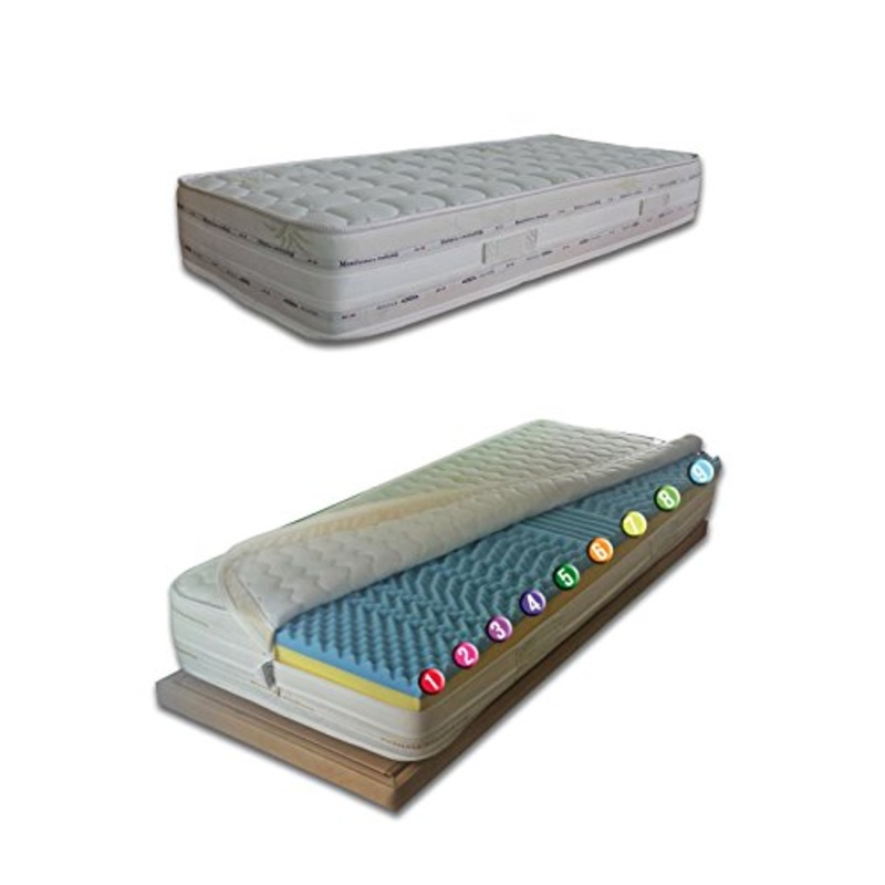 Dettagli: MATERASSO ORTOPEDICO, ANALLERGICO, FODERA IN COTONE, GUSCIO IN FIBRA ANALLERGICA IN ALOE VERA, ALTEZZA LASTRA MEMORY FOAM 4 CM RIGIDITA’ MEDIA H2, ALTEZZA LASTRA WATER FOAM 17 CM RIGIDITA’ MEDIA H2, ALTEZZA MATERASSO FINITO H22CM CIRCA, I COLORI DEI BORDINI SONO INDICATIVI, GARANZIA ITALIANA