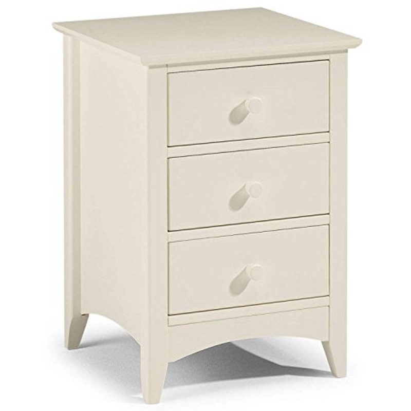 Dettagli: Il comodino Cameo a 3 cassetti l’accompagnamento ideale per qualsiasi stile di interni con il suo stile shaker. un oggetto elegante con alto spazio di archiviazione fornito da tre cassetti. Costruito con cornici in pino massiccio e MDF con una finitura laccata bianca pietra rende un oggetto robusto e durevole.