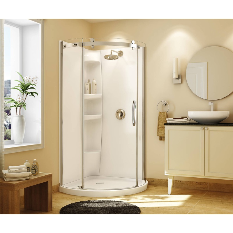 DXG780412957179MAAX 105960-000-001-102 Olympia Round - Right Opening 36 x 36 Acrylic Right-Hand Drain Shower Kit in White with Clear glass in Chrome