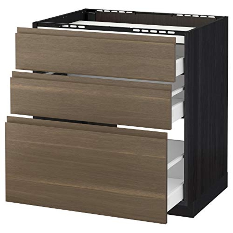 METOD/MAXIMERA base cabina f piano cottura/3 frontali/3 cassetti 80×62.1×88 cm nero/noce Voxtorp