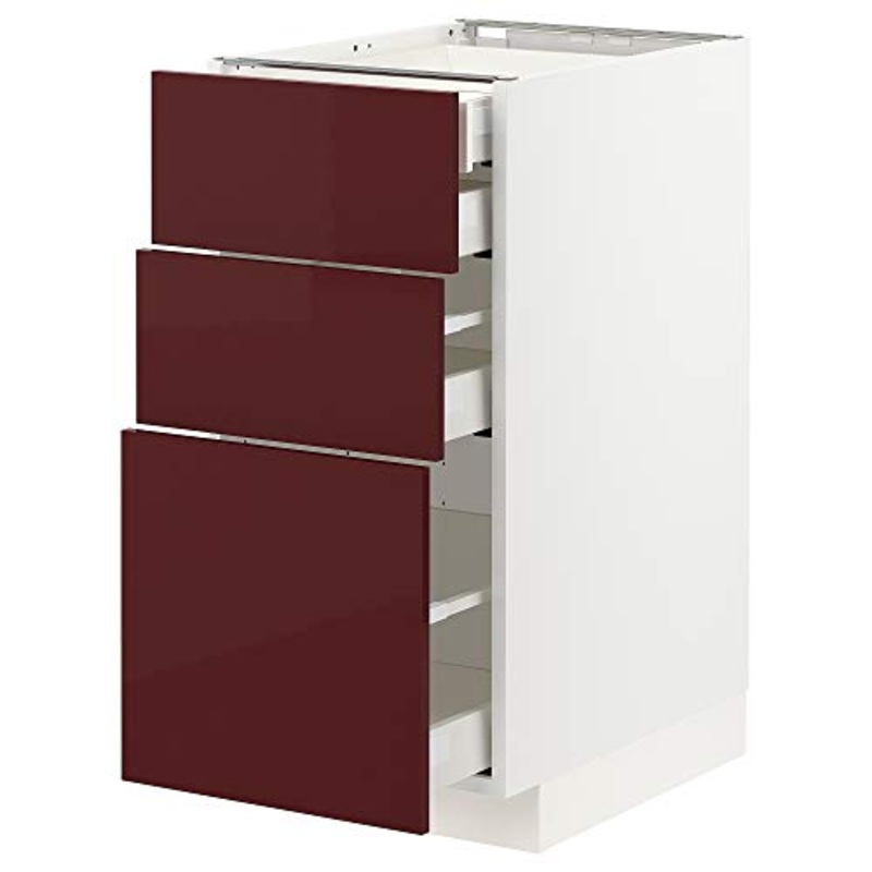 METOD/MAXIMERA base cb 3 frnts/2 basso/1 md/1 hi drw 40×61.6×88 cm bianco Kallarp/rosso scuro lucido-marrone