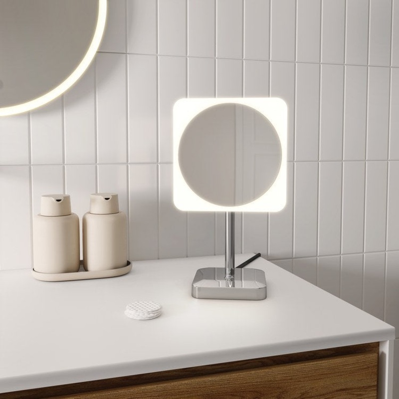 Mirror Vizo 8 Inch Chrome Freestanding LED Makeup with Square Frame Round