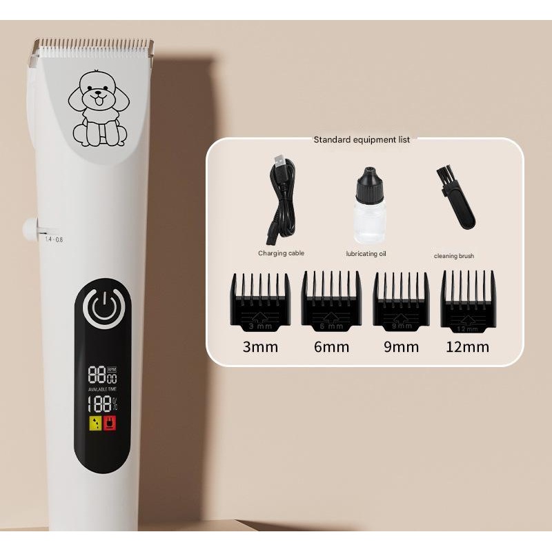 • Complete Grooming Kit: Includes the pet hair clipper, 4 x limit combs, cleaning brush, lubricating oil, and charging cable (charger not typically included, uses standard USB).