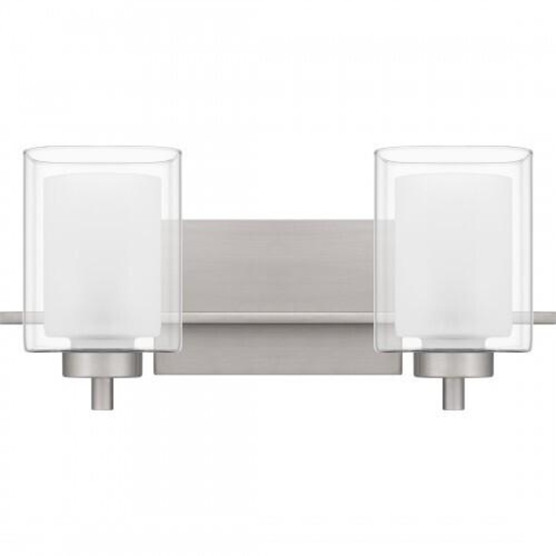 This modern posh wall sconce and vanity light collection features a simplistic design with classic finish options: choose from brushed nickel or matte black. The inner heavy glass is sand blasted inside and encased within outer clear glass shades for a sop