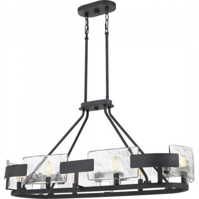 The Stratum delivers drama and depth in volumes. Thick panels of handmade glass subtly conceal the bulb, while allowing the light to pass through. A robust metal ribbon finished in royal ebony completes this artisanal look.